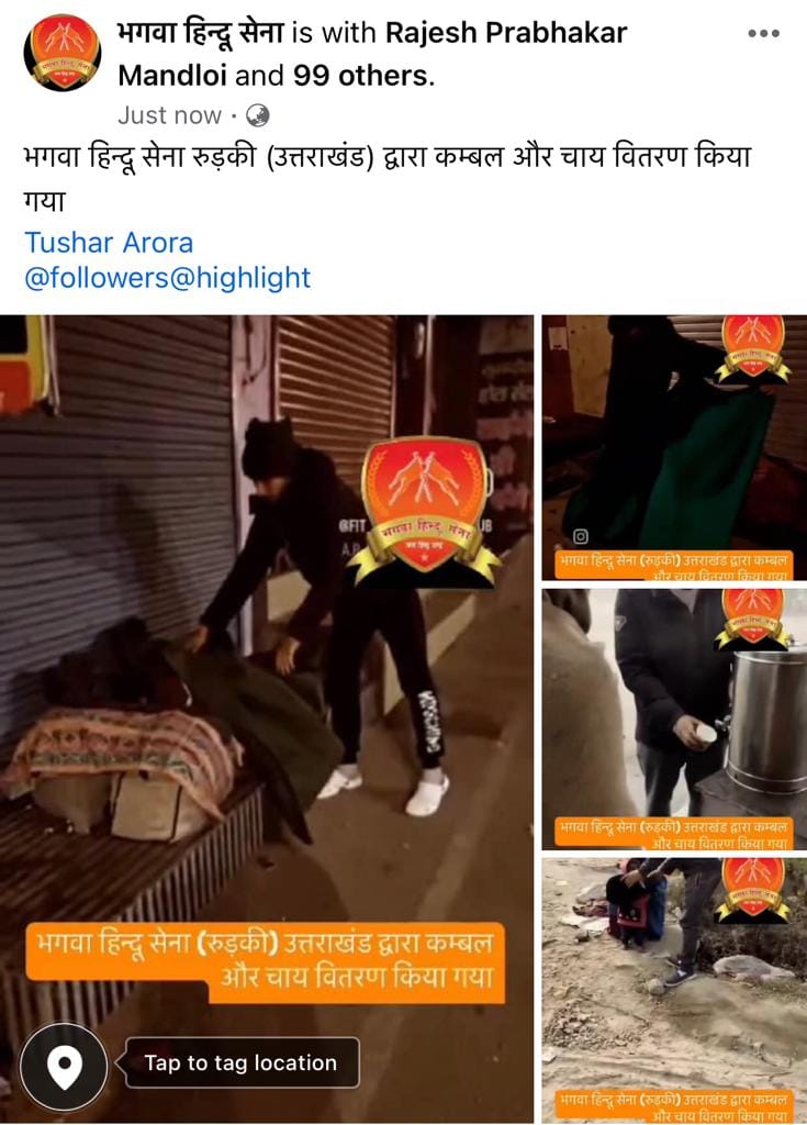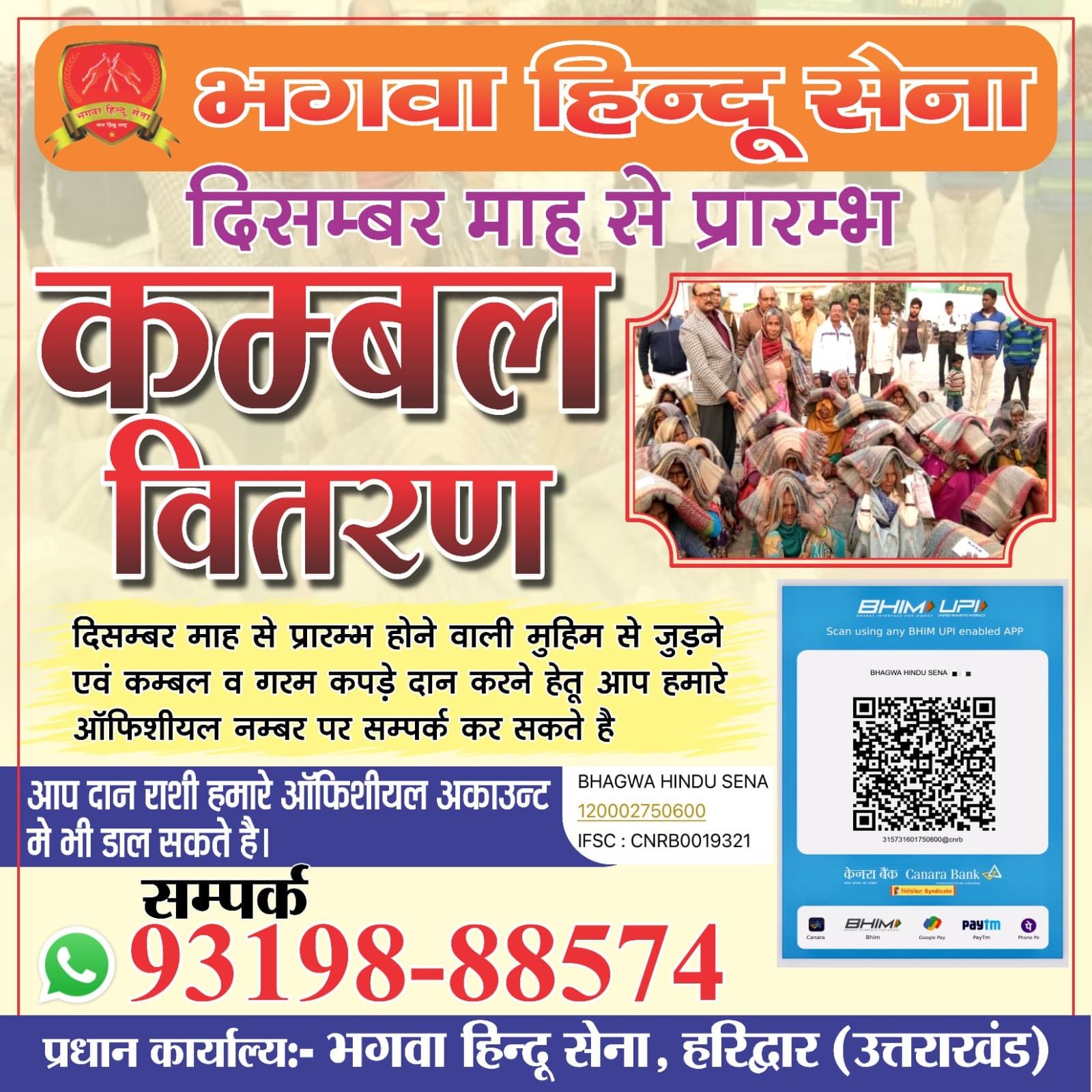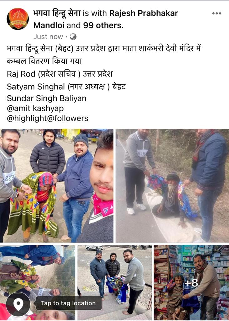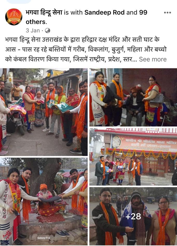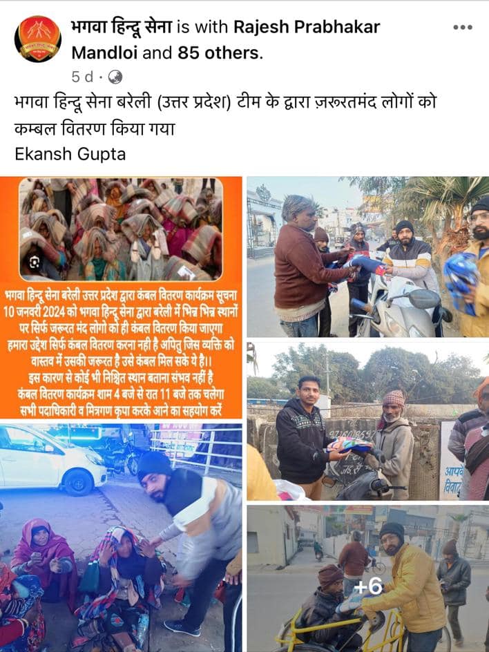 जनवरी 2025: भगवा हिन्दू सेना द्वारा गरीब और असहाय लोगों के लिए विभिन्न स्थानों पर कंबल वितरण मुहिम चलाई गई।