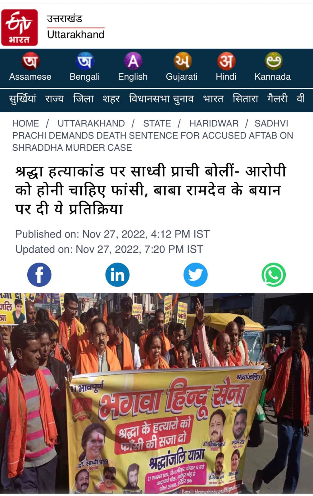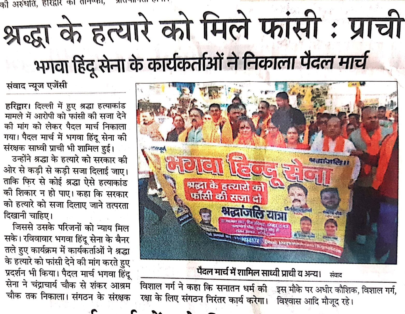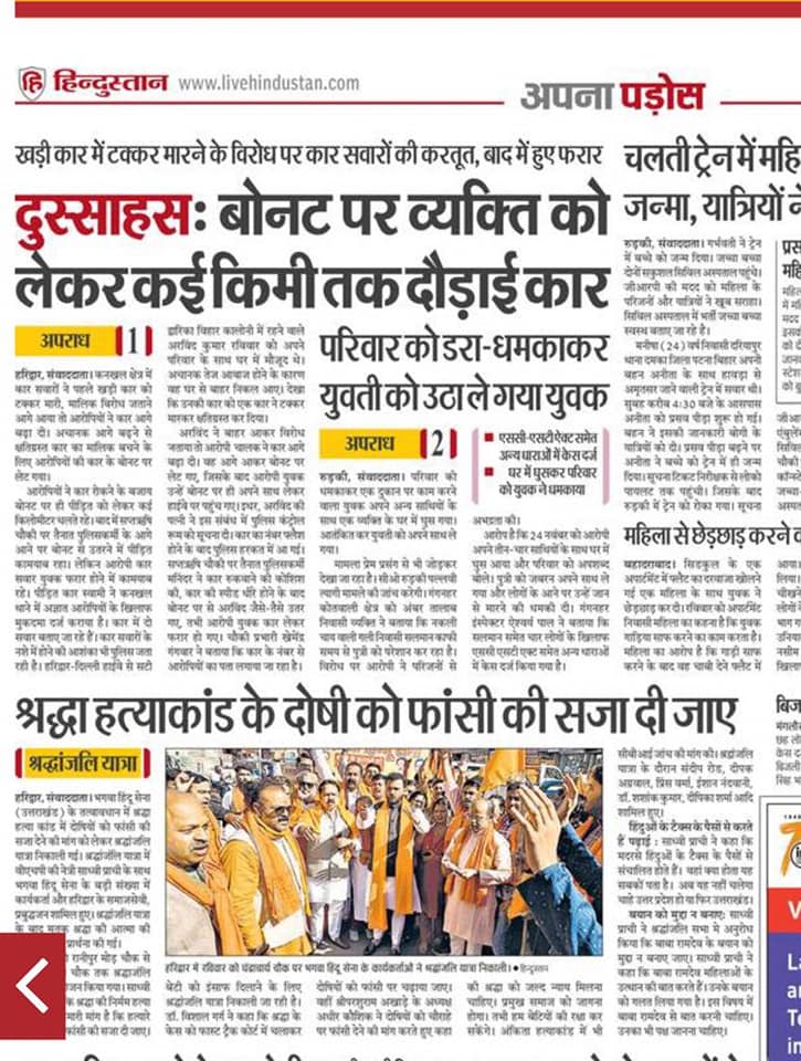 नवंबर 2023: श्रद्धा हत्याकांड – बेटियों पर हो रहे अत्याचार के खिलाफ आवाज उठाई गई।