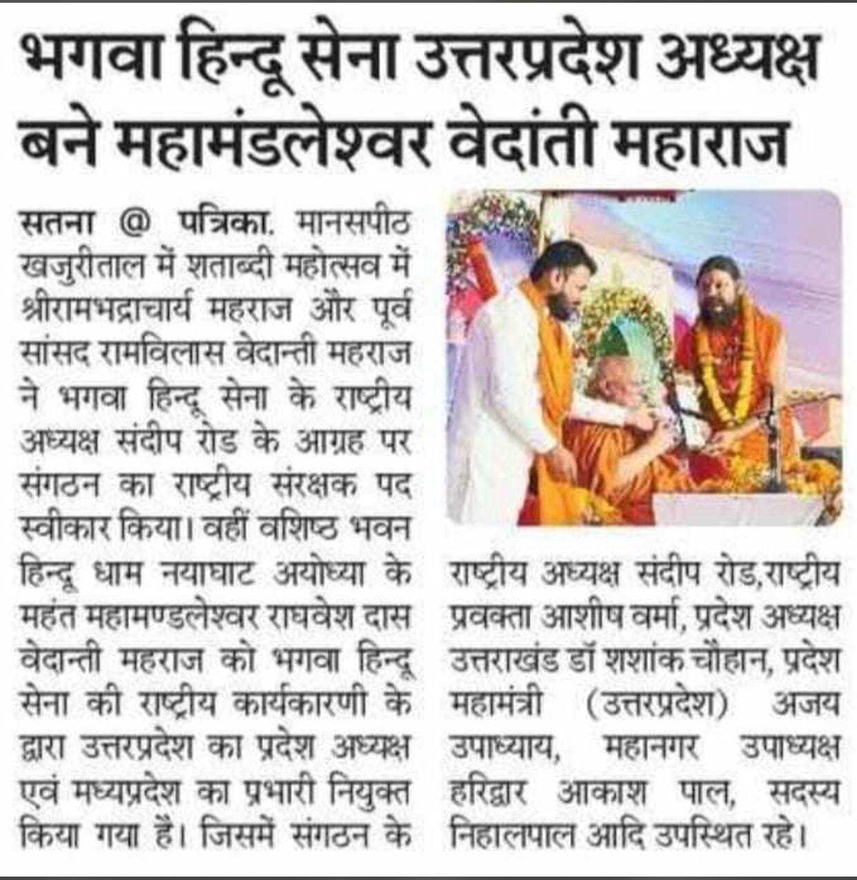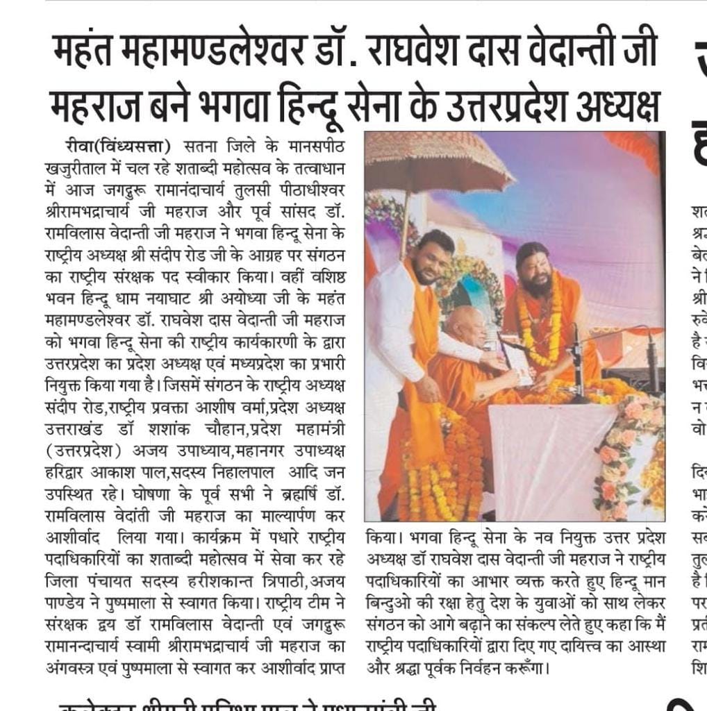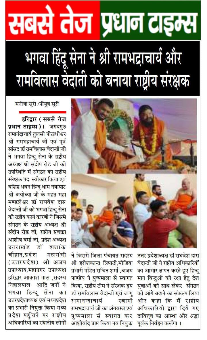 जुलाई 2023: सतना, मध्य प्रदेश में डॉ. रामविलास वेदांती जी महाराज और जगतगुरु रामभद्राचार्य जी महाराज ने संरक्षण पद स्वीकार किया।