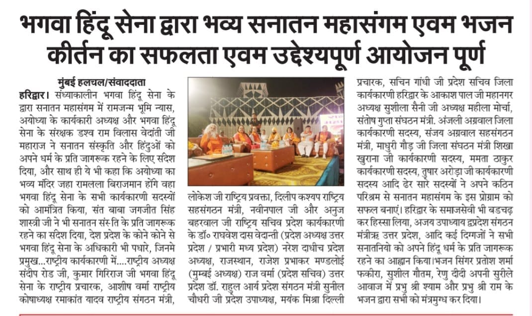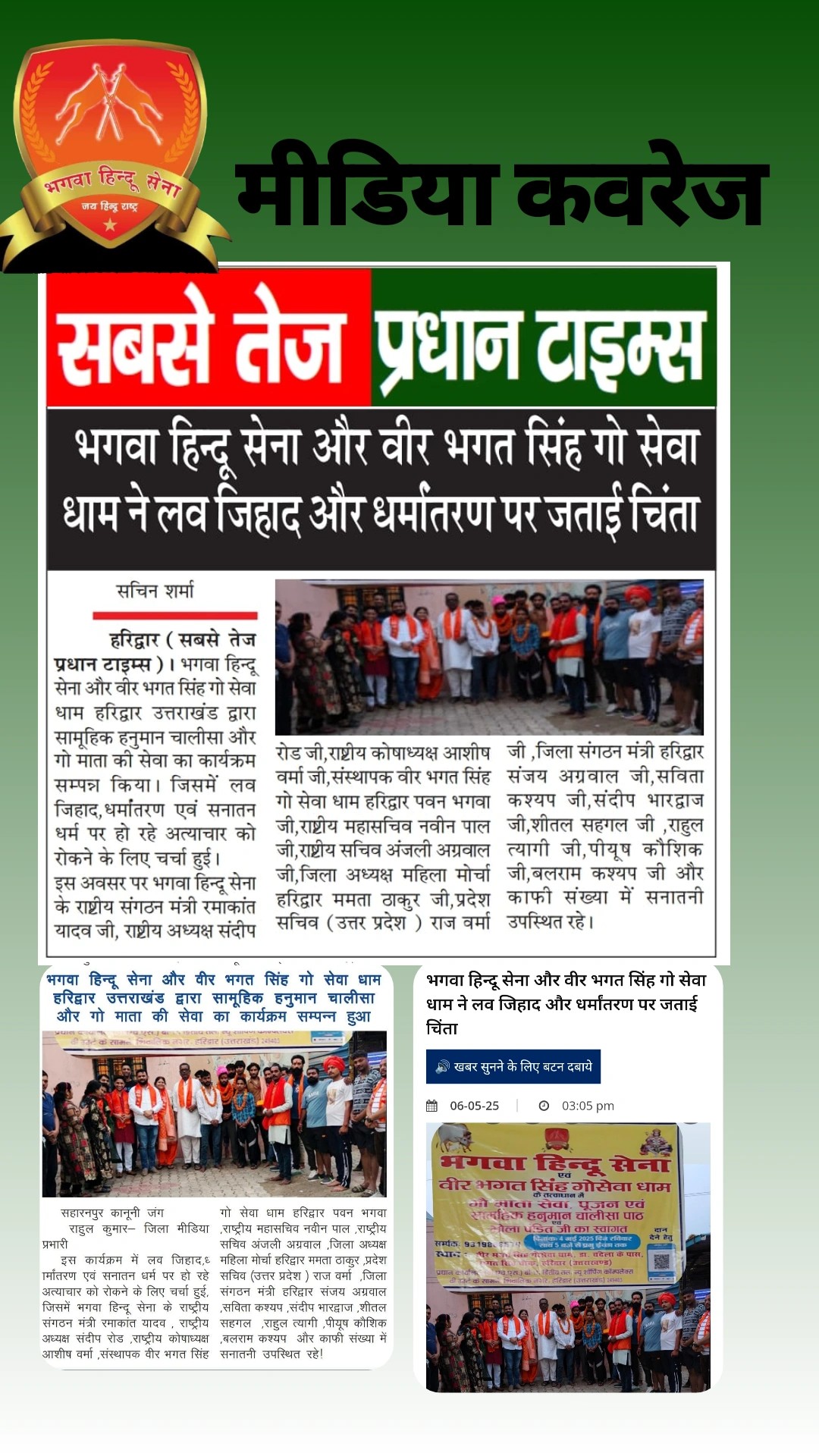 मई 2025: भगवा हिन्दू सेना द्वारा वीर भगत सिंह गौ सेवा धाम, हरिद्वार में गौ माता की सेवा और सामूहिक हनुमान चालीसा पाठ किया गया।