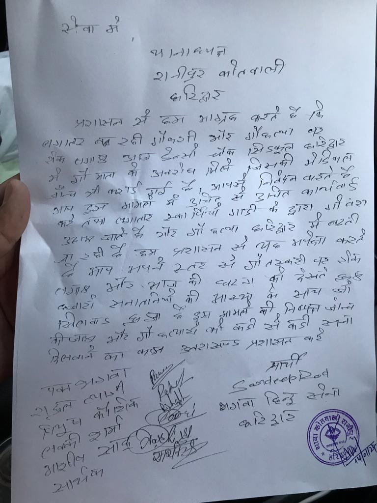 जनवरी 2024: गौ माता के अवशेष मिलने के मामले में भगवा हिन्दू सेना की तहरीर पर मुकदमा दर्ज किया गया।