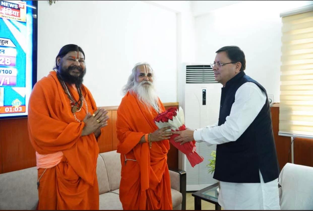 सनातन महासंगम के दौरान उत्तराखंड के मुख्यमंत्री और कैलाशानंद जी महाराज द्वारा डॉ. रामविलास वेदांती जी महाराज का स्वागत किया गया।